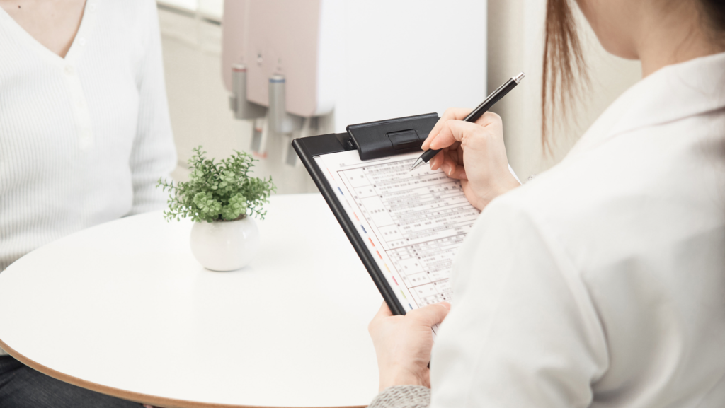 問診票をもとに、患者様のご要望や、ご不安な点をお伺いします。疑問、お悩みなどをお聞かせ下さい。