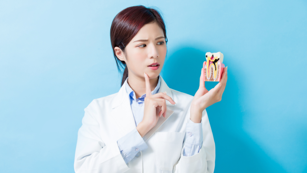 虫歯は、食事をした際に残った糖分をもとに口腔内の細菌が酸を作り出し、この酸が歯を溶かします。
